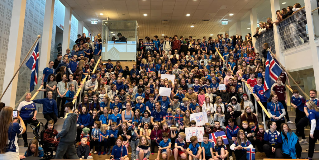 Rýmingaræfing gekk vel í morgun og tók ekki nema rúmar 11 mínútur að tæma skólann og taka manntal af öllum nemendum og starfsmönnum. Mikil stemning hefur verið síðustu daga í tengslum við EM í handbolta og náði hámarki í dag þegar lagið var tekið í Tröllatröppum skólans. https://www.facebook.com/reel/3085850064912289